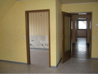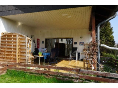 Das etwa 260 m² große und in 1983/84 erbaute Zweifamilienhaus mit Appartement verteilt sich im Erdgeschoss auf in ein geräumiges Wohn- und Esszimmer. Dieser Bereich erstreckt sich über 2 Wohnebenen und ist mit einer Holztreppe verbunden. Vom Wohnzimmer haben Sie direkten Ausgang auf die überdachte Terrasse. Weiterhin sind ein Schlafzimmer, 2 Kinderzimmer, eine Küche mit Speisekammer, ein Badezimmer mit Badewanne und Dusche. Die Wohnfläche dieser Wohnung beträgt ca. 138 m². Besonders der Blick ins Grüne wird Sie begeistern. Anfang der 90er- Jahre wurde das Dachgeschoss ausgebaut. Hier befindet sich eine Wohnung mit ca. 81 m² mit Wohnzimmer, Küche, Bad mit Wanne und Dusche sowie ein Schlafzimmer und ein Durchgangszimmer. Dieser Bereich kann separat genutzt werden und eignet sich ideal zur Vermietung. Im Kellergeschoss sind neben Heizungsraum, Waschküche, 3 Vorratsräumen auch ein Appartement mit rd. 41 m² Wohnfläche untergebracht. Das Appartement und die Erdgeschoss-Wohnung sind zurzeit vermietet, die monatliche Kalt-Mieteinnahme beträgt 650 €. Zum 31.07.2015 ist die EG-Wohnung gekündigt.
