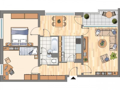 Die hübsche Wohnung befindet sich in einem gepflegten Mehrfamilienhaus, das von Grünflächen umrahmt wird. In der netten Nachbarschaft werden Sie sich sicher wohlfühlen