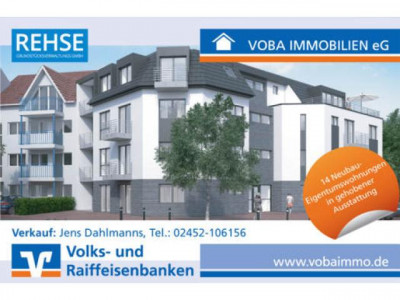 Objekt-Nr.: 8082214 Neubau-Eigentumswohnungen mit Terrasse oder Balkon in 52525 Heinsberg-OberbruchKein Energieausweis vorhanden / in Vorbereitung.Gehobenes, barrierefreies Wohnen im Ortskern!Diese attraktiven Wohnungen in gehobener Ausstattung entstehen im beliebten Wohnort Oberbruch. Von hier aus sind sämtliche Versorgungseinrichtungen für den täglichen Bedarf, Kindergärten, Schulen und Ärzte bequem erreichbar. Ebenso das Zentrum der aufstrebenden Kreisstadt Heinsberg.Durch den infrastrukturellen Ausbau der Innenstadt sowie die Reaktivierung der Bahnanbindung wurde nicht nur der Wohlfühlcharakter in der City deutlich gesteigert, sondern auch der Standort Oberbruch profitiert von einer eigenen Bahnhaltestelle. Der Abstand zur Autobahn (A 46) beträgt ca. 2 km, die benachbarten Niederlande sind nur ca. 7 entfernt. Sehr gut durchdachte Grundrisse sorgen bei dieser Neubaumaßnahme für ein modernes Wohngefühl mit optimalem Komfort in hellen, barrierefreien Räumen.Weitere Objektmerkmale im Überblick:- Kubischer Baukörper mit drei Vollgeschossen und einem Staffelgeschoss - Zeitloser, energieeffizienter und massiver Baustil (Blower-Door-Test)- Blockheizkraftwerk - Einzelraumgesteuerte Fußbodenheizung- Aufzug- Elektronische Rollläden (mit Hochschiebesicherung)- Geflieste Oberböden- GegensprechanlageFolgende 14 Eigentumswohnungen werden schlüsselfertig zum Kauf angeboten:Whg.-Nr. 1, EG, Wohn-/Nutzfläche ca. 52 m² / 2 ZKDB, Kaufpreis EUR 114.900,--Whg.-Nr. 2, EG, Wohn-/Nutzfläche ca. 52 m² / 2 ZKDB, Kaufpreis EUR 119.000,--Whg.-Nr. 3, EG, Wohn-/Nutzfläche ca. 82 m² / 3 ZKDB, Kaufpreis EUR 174.000,--, reserviertWhg.-Nr. 4, 1. OG, Wohn-/Nutzfläche ca. 52 m² / 2 ZKDB, Kaufpreis EUR 114.900,--Whg.-Nr. 5, 1. OG, Wohn-/Nutzfläche ca. 52 m² / 2 ZKDB, Kaufpreis EUR 125.000,--Whg.-Nr. 6, 1. OG, Wohn-/Nutzfläche ca. 52 m² / 2 ZKDB, Kaufpreis EUR 123.000,--Whg.-Nr. 7, 1. OG, Wohn-/Nutzfläche ca. 52 m² / 2 ZKDB, Kaufpreis EUR 123.000,--Whg.-Nr. 8, 2. OG, Wohn-/Nutzfläche ca. 52 m² / 2 ZKDB, Kaufpreis EUR 114.900,--Whg.-Nr. 9, 2. OG, Wohn-/Nutzfläche ca. 52 m² / 2 ZKDB, Kaufpreis EUR 125.000,--Whg.-Nr. 10, 2. OG, Wohn-/Nutzfläche ca. 52 m² / 2 ZKDB, Kaufpreis EUR 123.000,--Whg.-Nr. 11, 2. OG, Wohn-/Nutzfläche ca. 52 m² / 2 ZKDB, Kaufpreis EUR 123.000,--Whg.-Nr. 12, DG, Wohn-/Nutzfläche ca. 52 m² / 2 ZKDB, Kaufpreis EUR 129.000,--Whg.-Nr. 13, DG, Wohn-/Nutzfläche ca. 52 m² / 2 ZKDB, Kaufpreis EUR 132.000,--Whg.-Nr. 14, DG, Wohn-/Nutzfläche ca. 75 m² / 3 ZKDB, Kaufpreis EUR 178.000,--Jeder Wohneinheit ist ein gepflasterter Pkw-Stellplatz bzw. ein Carport zugeordnet (im Kaufpreis bereits enthalten). Es fällt keine Käuferprovision an.Alle Details entnehmen Sie bitte unserem Langexpose sowie der ausführlichen Bau- und Leistungsbeschreibung; diese Unterlagen senden wir Ihnen auf Wunsch gerne zu.Wir möchten, dass Sie sich auf Ihr neues Zuhause freuen!Für weitere Auskünfte wenden Sie sich bitte an unseren Projektleiter Jens Dahlmanns, Tel. Nr. 02452/106156.