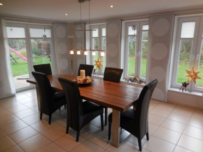 EG: Eingangsdiele, Wohnzimmer, Essbereich, Kinderzimmer, Büro, große Küche mit moderner Einbauküche, Speisekammer, Duschbad; DG: Flur, Schlafzimmer, 3 Kinderzimmer, Dusch- und Wannenbad; ca. 214 m² Wohnfläche, Baujahr ca. 2007, Grundstück ca. 949 m², Teilkeller mit Gäste- und Spielbereich, ca. 93 m² Nutzfläche; Carport mit Abstellraum, Terrasse, Fernzentralheizung, Bedarfsausweis mit Endenergie 116,4 kWh/(m²a), Übergabe nach Vereinbarung, Kaufpreis: 519.000,-- €