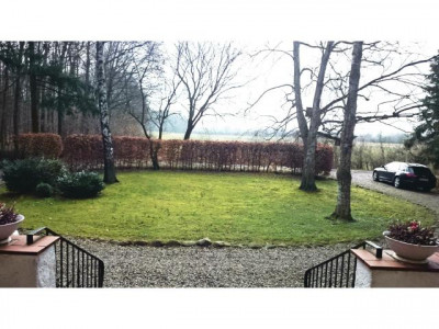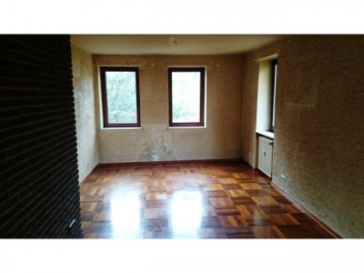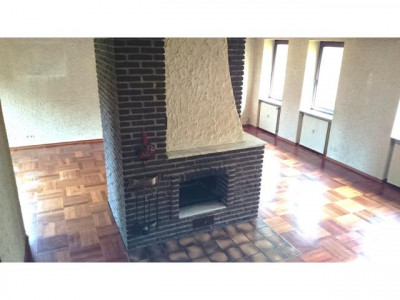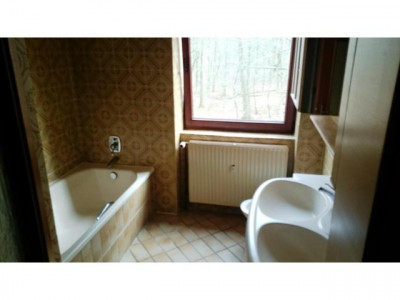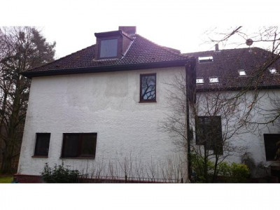 Die Wohnung befindet sich in einer 4-Familienvilla auf einem echten Traumgrundstück im 1. Obergeschoss. Man betritt das Haus durch eine große Eingangshalle mit einer offenen Treppe ins Obergeschoss. Die Wohnung besteht aus einem großen Wohnzimmer mit Kamin, einer kleinen Einbauküche, einem sehr geräumigen Vollbad mit Fenster und einem Schlafzimmer. Laut Eigentümer wäre der Anbau eines Balkones im Wohzimmer möglich. Das Wohnzimmer lässt sich bei Bedarf in zwei Zimmer teilen. Aus allen Zimmern hat man einen herrlichen Blick ins Grüne.