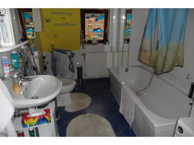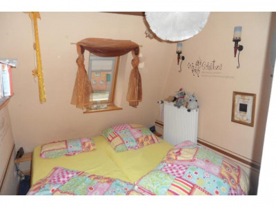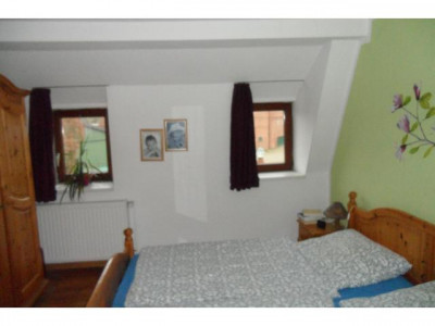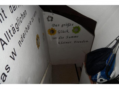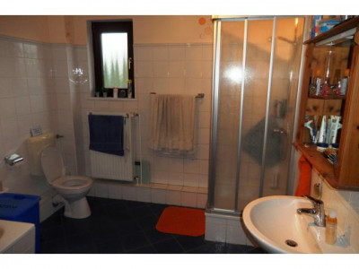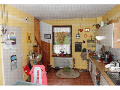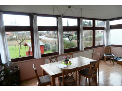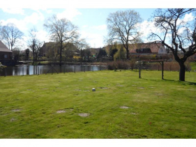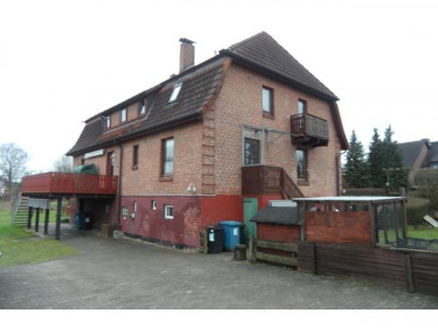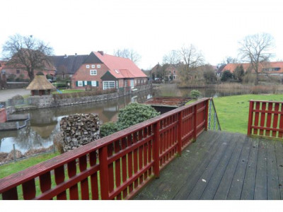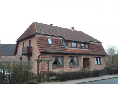 Das unterkellerte Doppelhaus ist rot verklinkert und befindet sich auf einem Grundstück mit Blick auf den umzäunten Dorfteich und einen wunderschönen Gutshof. Die nördliche Haushälfte hat im Erdgeschoss eine große Wohnküche und ein geräumiges Wohnzimmer. Im Dachgeschoss befinden sich neben dem Vollbad drei Zimmer. Von einem Zimmer geht ein kleiner Balkon ab. Im Keller befindet sich ein Gäste-WC. Die südliche Haushälfte ist bis zum Ende des Jahres für € 725,-- mtl. vermietet. Vom geräumigen Flur gehen ab, das Vollbad mit Fenster, die Küche mit Ausgang zum großen Balkon mit sehr schönem Ausblick, das große Wohnzimmer mit Zugang zur Veranda und ein großes Schlafzimmer. Im Dachgeschoss befinden sich drei Schlafzimmer, eines mit Zugang zu einem weiteren Balkon. Es besteht die Möglichkeit die beiden Wohnungen zu verbinden. Zur Zeit wird das Haus durch zwei separate Gasheizungen beheizt. Der dekorative Zustand des Hauses ist renovierungsbedürftig. Ansehen und begeistern lassen.