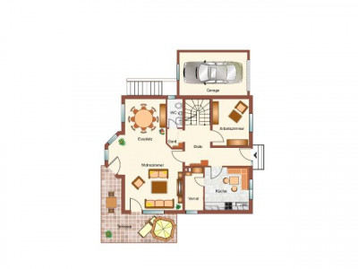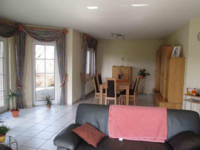 Durch den einladenden Eingangsbereich mit Garderobe und Gäste-WC gelangen Sie in den offenen Wohn- Essbereich mit einer Größe von ca. 39 m². Von dem Wohn- und Esszimmer aus genießen Sie die Möglichkeit auf die große, sonnenverwöhnte Terrasse zu gelangen. Eine Küche mit Hauswirtschaftsraum ist ebenfalls vom Flur aus begehbar. Des Weiteren befindet sich im Erdgeschoss noch ein Raum, welcher eine schöne Größe besitzt und individuell nutzbar ist.