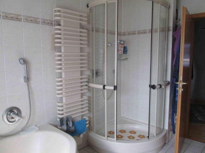 Über eine offene Holztreppe gelangen Sie in das Obergeschoss. Hier sind drei Schlafzimmer und ein geräumiges Badezimmer untergebracht. Von zwei Schlafzimmern gelangen Sie auf einen kleinen Balkon. Das dritte Schlafzimmer besitzt zwei Abmauerungen, welche eine zusätzliche Abstellmöglichkeit oder auch ein kleines Bad ermöglichen. Das Badezimmer ist mit einer Eckbadewanne und einer Dusche sowie zwei Waschtischen ausgestattet.