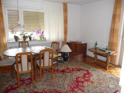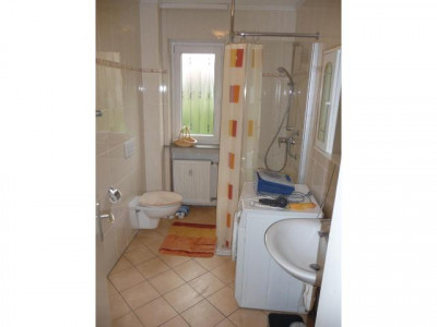Bei dieser Immobilie handelt es sich um ein massiv gebautes, voll unterkellertes Wohnhaus mit insgesamt 3 abgeschlossenen Wohnungen aus dem Baujahr 1965. Im Erdgeschoss und Obergeschoss befindet sich jeweils eine 3-ZKB-Wohnung mit Balkon und ca. 68 m² Wfl.. Im Dachgeschoss liegt eine kleine, erst im Jahr 2008 neu ausgebaute Studiowohnung mit großem Wohn-/Schlafraum, Küchenbereich und Dusche/WC. Die Gesamtwohnfläche beträgt ca. 172 m². Im Kellergeschoss stehen neben dem Heizungsraum noch mehrere Kellerräume und ein Waschraum zur Verfügung. Für die PKW´s gibt es Garagen und Stellplätze im Hof. Eine Wohnung im OG des Hauses ist für 550,- € /Monat fest vermietet , zwei Wohnungen stehen derzeit leer.