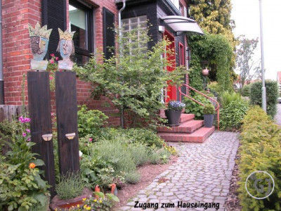 Die sehr ansprechende und gepflegte Doppelhaushälfte eines Backsteinhauses hat eine Wohnfläche von ca. 130 m². Die Grundstücksgröße beträgt 360 m². Das Haus wurde im Jahr 1926 erbaut und fortlaufend saniert, modernisiert und renoviert bis in das Jahr 2015 hinein. AUFTEILUNG DES HAUSES:- Erdgeschoss: Eingangsbereich, offene Küche, großes Wohn-/Esszimmer sowie eine Gästetoilette - 1. Obergeschoss: z.Zt. Schafzimmer, Arbeitszimmer und Duschbad - 2. Obergeschoss: Kinder- oder Gästezimmer, Badezimmer und kleine Abstellkammer SONSTIGE NUTZFLÄCHE:- Keller: 3 Räume komplett gefliest, großer Hobbyraum od. Büroraum mit Heizung, Heizungsraum u. Waschküche mit Lagerfläche, kleiner Abstellraum- kleine Garage mit GerätevorraumAUSSENANLAGE:- gepflegter, grüner Garten, rückseitig vom Haus, umzäunt, fast uneinsehbar - mit Rasen, Büschen, Hecken, Bäumen (Apfelbaum, große Zeder) und sonstiger Bepflanzung - 2 gepflasterte Sitzplätzen- Außen- und Gartenbeleuchtung- Tiefbrunnen zur Bewässerung- neue Eibenhecke straßenseitig- Zugang und Hof mit Basalt-Kopfsteinpflaster und Begrünung