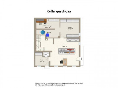 - Die ca. 150 m² Verkaufsfläche ist vorteilhaft auf 2 Ebenen im EG und UG untergebracht