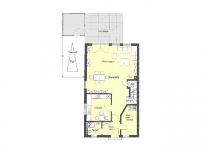 Beheizt wird zeitgemäß über eine Luftwärmepumpe als Fußbodenheizung.