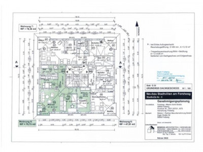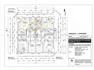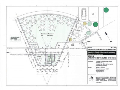 Es entstehen als Neubebauung vier 3-geschossige (Optional 4-geschossig) Mehrfamilienhäuser; wovon zwei Häuser mit einem eingeschossigen Mehrzweckbau verbunden werden (siehe Lageplan). Ihre Architektur zitiert mit ihren gedrungenen und durch Balkone, große französische Fenster und Fensterläden gegliederten Baukörpern große städtische Villen mit südlichem Ambiente.Dieses Gefühl vermitteln auch die Wohnungen, die ihren Bewohnern mit großen Fenstern, mit hellen, belichteten Fluren und großzügigen Grundrissen mit Essdielen und auf Wunsch zum Wohnbereich hin geöffneten Küchen ein Stück südliches Flair in unsere Bergstadt am Rande des Erzgebirges bringen werden.Auch speziell die Anforderungen älterer und in diesen Wohnungen älter werdender Menschen sind sehr gut erfüllt, da generell eine barrierefreie Erschließung und auch der Einbau eines Aufzugs vorgesehen sind.Bei Planung und Konzeption der Häuser wurde mit dem Standard KfW 60 besonderer Wert auf Energieeffizienz gelegt, die sich in vergleichsweise niedrigen Betriebskosten niederschlägt.Fast jede Wohnung erhält außerdem die Möglichkeit eines individuellen Kaminanschlusses.Die Gebäude sind komplett unterkellert, so dass jede Wohnung über einen eigenen Kellerraum verfügt - zusätzlich sind AbstellräumeZ-bereiche in den Wohnungen vorhanden.Die Wohnungen ordnen sich im Grundriss um einen Erschließungskern mit Treppenhaus und Aufzug an. Die Erschließung der Wohnungen ist barrierefrei nach DIN 18 025 geplant (Eingang, Rampen, Aufzug, Wohnungszugang). Die behinderten- und rollstuhlgerechte Ausstattung der Wohnungen muss gesondert vereinbart werden.Die kompakten, beinahe würfelförmigen Baukörper besitzen ein sehr günstiges Verhältnis von Hüllfläche zum Volumen. Zusammen mit den für die Sonneneinstrahlung günstigen großzügigen Fenstern wirkt sich dies sehr positiv auf den Energiebedarf der Anlage aus (passive Sonnenenergienutzung).