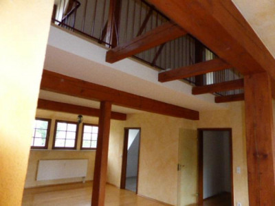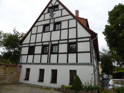 Die ETW befindet sich in einen ehemaligen Drei-Seiten-Hof. Das Anwesen ist denkmalgeschützt und verfügt über insgesamt 9 Wohneinheiten. Der Hof hat eine bis in die Zeit der Napoleonischen Feldzüge dokumentierte Vergangenheit. Man sagt, dass Napoleon die Pfarre als Lazarett requirierte.Bei dem Vorderhaus (Fachwerkhaus) handelt sich um das nach den Bestimmungen des Denkmalschutzes wiedererstellte Pfarrhaus der Gemeinde und besteht aus 6 Wohneinheiten ( Nr. 4-9). Der hintere Teil des Hofes ist die zu drei Wohneinheiten (Nr. 1-3) umgebaute Scheune. Der dritte Teil des Gehöfts ging in der Zeit der DDR leider verloren und ist nicht Teil des Gemeinschaftseigentums. Die zu verkaufende Wohnung ist die ETW Nr.8 im DG links.Die Wohnung mit ca. 96 m² Wohnfläche erstreckt sich über zwei Stockwerke, offener Bauweise im unteren Wohnbereich und einer offenen Galerie im Spitzboden.Die eigentliche nutzbare Fläche ist aufgrund der offenen Schrägen natürlich größer, kann jedoch in Leichtbauweise jederzeit vom Käufer unterteilt – oder abgetrennt werfen.
