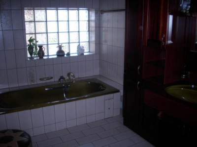 Sehr gepflegtes Einfamilienhaus auf einem 1150m² großem gepflegtem Grundstück mit Doppelgarage, Keller, begehbarem Dachboden und der Möglichkeit es in zwei Wohneinheiten mit separaten Eingängen um zu gestalten.Im Keller befindet sich die Heizanlage, die Öltanks, ein Tresor, der Waschraum und ein Vorratsraum, auch gibt es hier noch einen gut erhaltenen Backofen mit Kaminanschluss.Das Erdgeschoss bietet neben der große Küche mit kleinem Vorratsraum und dem großen Wohnzimmer, ein großes Badezimmer mit Wanne, Dusche und Platz für eine Sauna. Das Obergeschoss mit seinen 6 Zimmern und einem WC bietet viel Platz für Kinder, Hobby oder Besucher.Auf dem Dachboden lässt sich im Sommer so einiges warm und im Winter kalt lagern oder der alte Räucherofen wieder in Betrieb nehmen.Eine der beiden gefliesten und beheizten Garagen mit Wasser und Stronanschluss hat eine in den Boden eingelassene Grube, optimal für Autoschrauber.