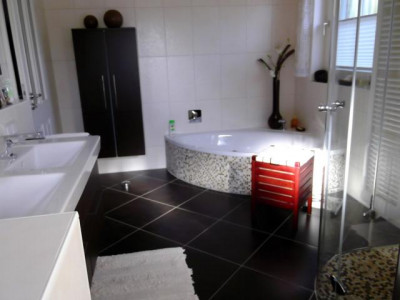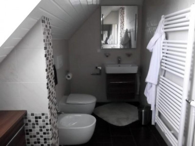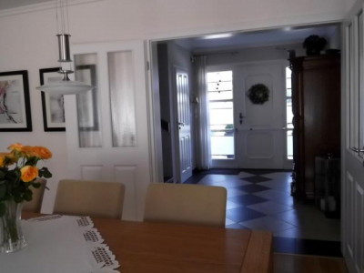 In seiner Ausstattung und Raumaufteilung erfüllt das Objekt gehobene Wohnansprüche. Es wurde 1986 in Holzrahmen-Bauweise und Klinkerfassade erstellt und in den letzen acht Jahren umfangreich modernisiert. Die Wohnfläche beträgt 170 m² + 25 m² Wintergarten. Das Gebäude hat fünf Zimmer, zwei Bäder und ein Gäste-WC, Küche (mit EBK) und ist nicht unterkellert. Der am Wohnzimmer angeschlossene Wintergarten wurde 2005 erbaut. Er ist beheizbar (Heizkörper und Fußbodenheizung) und verfügt über eine elektrische, automatisch fahrende Außenbeschattung. Sämtliche Bodenbeläge wurden zwischen 2006 und 2012 erneuert. Im Wohnzimmer, das über einen Kachelkamin verfügt, wurde hochwertiges Holzparkett verlegt, Diele, Küche und Hauswirtschaftsraum wurden komplett neu verfliest. Die Bäder sowie das Gäste-WC wurden komplett saniert. Die Innentüren im gesamten Wohnhaus wurden ca. 2010 erneuert. Alle Fenster haben Sprossen und elektrische Rollläden und sind 3-fach isolierverglast.Das Grundstück hat eine Größe von 858 m² und ist aufwendig angelegt. Der Garten verfügt über einen Teich und einen Pavillon. Wege und Auffahrt sind aus Pflasterklinker und Granit und wurden 2011 erneuert. Am Haus befinden sich zwei Terrassen, wovon eine teilüberdacht ist.