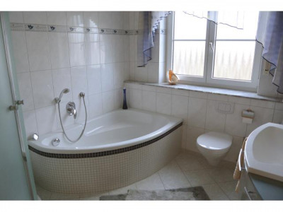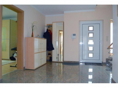 Bei dem Objekt handelt es sich um ein großzügiges Einfamilienhaus mit Doppelgarage.Das Wohnhaus wurde in Massivbauweise errichtet und verfügt über eine stattliche Abmessung von ca. 9,8 Meter mal ca. 9,7 Meter. Dazu ein ausgezeichnetes Raumkonzept mit gehobener Ausstattung.Sie betreten das Wohnhaus über eine geräumige Diele mit einer Fläche von ca. 17 m², darüber gelangen Sie zum großzügigen Wohn- Essbereich mit ca. 27 m² Ein Kaminofen spendet behagliche Wärme und dient als optischer Raumteiler zwischen Wohn- und Essbereich.Die große Wohnküche mit ca. 14,5 m² verfügt über eine moderne Markeneinbauküche mit hochwertigen Einbaugeräten. Von der Küche sowie dem Wohn- Essbereich gelangen Sie direkt auf die sichtgeschützte Terrasse mit ca. 21 m².Ein geräumiges Kinderzimmer und ein modernes Wannenbad schließen die Ebene im Erdgeschoss ab.Zum Obergeschoss führt eine dekorative Marmortreppe.Hier befinden sich zwei Kinderzimmer mit ca. 14,9 m² und ca. 14 m². Beide verfügen über einen französischen Balkon, ein Schlafzimmer mit ca. 19,3 m². Vom Kinderzimmer und vom Schlafzimmer gelangen Sie zu dem West- Balkon. Das moderne Tageslichtbad mit gehobener Ausstattung: Wanne, Waschbecken, Dusche, Handtuchwärmer undHänge WC schließt diese Ebene im Obergeschoss ab.Zum Studio führt eine Wendeltreppe aus Massivholz. Das Studio ist fertig ausgebaut mit ca. 25.3 m² und eignet sich perfekt als Büro oder RefugiumDas Kellergeschoss verfügt über Wohnraumhöhe.Hier befindet sich ein gut belichteter, großer Hobbyraum,ein Gästezimmer, ein Duschbad mit Waschmaschinenanschluss und ein Heizungs- und Hauswirtschaftsraum mit Sauna.Die Ausstattung:massive Bauweisetip top Zustandlichtdurchflutete Räumebodentiefe Isolierglasfenster in Kunststoffausführung Fenster mit integrierten Sprossen und Rolllädendekorative GranitfensterbänkeMarmorboden in der Diele EGLaminatboden in allen Wohnräumen, Diele OG und StudioFliesen in der Küche und im gesamten Untergeschossmoderne Markeneinbauküche mit hochwertigen EinbaugerätenZweiter Küchenanschluss im OG vorhanden dekorative Marmortreppe vom KG bis zum DGWendeltreppe aus Massivholz vom DG zum Studio3 moderne Tageslichtbäder mit gehobener Ausstattung: Wanne, Eckdusche Hänge WC etc.Fußbodenheizung im Erdgeschoss und im Bad OGsolarunterstützte Gaszentralheizungmoderne Flachheizkörper mit Thermostatextra hoher Kniestock ( ca. 1.50 m ) Süd-Terrasse und West- Balkon...Terrassenüberdachung in Glasausführung mit Beleuchtung,ferngesteuerte Markisen ( Senkrecht und Waagrechtausführung )sichtgeschützter Garten ( imposanter Kirschlorbeer )Regenwasserzisterne mit einem Fassungsvermögen von ca. 6 m³ für Gartenbewässerung - und Brauchwasser ( Toilettenspülung Waschmaschine…)Türsprechanlage mit KameraSat.- Anlage und TV Anschluss in fast allen RäumenDSLübergroße Doppelgarage direkt am Haus mit Zugang zum Garten und vier weitere KFZ-Stellplätze