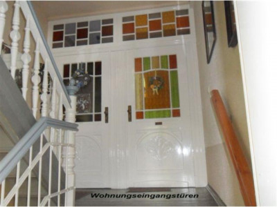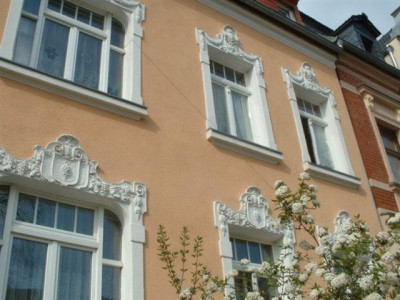 Das Gebäude mit 234 qm Wohnfläche ( 1.343 cbm umbauter Raum ) wurde in den Jahren 1995 – 1999 vom Architekten mit ansässigen Handwerksbetrieben solide rekonstruiert und grundsaniert, dabei wurden sämtliche Wasserleitungen, Elektroinstallationen mit Zählerkasten und Stockwerksverteilern neu verlegt. Das Haus ist voll unterkellert. Das Dach wurde neu eingedeckt und die Fußböden mit Verlegeplatten und darauf mit modernen Belägen neu versehen. Die Sanierung umfasst 5 abgeschlossene Wohneinheiten, wobei zwei Wohnungen im Jahre 2009 zu einer repräsentativen Maisonettewohnung mit zwei Badezimmern ( 1. Duschbad mit Einbauwaschtisch, wandhängendem WC und Bidet . 2. Vollbad mit Wanne, Einbauwaschtisch und wandhängendem WC ) verbunden wurden. Eine stabile Holztreppe verbindet die beiden Einheiten innerhalb der beiden Stockwerke. Die Dachgeschosswohnung wurde 2009 energetisch zusätzlich gedämmt und saniert. Eine Einbauküche mit Spülmaschine, Herd und Kühlkombination wurde vom Fachhandwerker eingebaut. Die anderen drei Wohnungen sind mit Duschbädern und wandhängendem WC ausgestattet. Sämtliche Fenster sind aus Holz mit Isolierglasscheiben im urprünglichen Stil der damaligen Zeit neu hergestellt worden. In allen Wohnungen sind Gaszentralheizungen mit Warmwasserversorgung. Alle Wohnungen sind mit einer Gegensprechanlage zur Haustüre und mit einer SIEDLE-Briefkasteneinheit ausgestattet. Sämtliche Medienanschlüsse sind in den Wohnungen vorhanden. Alle Mieter haben einen separaten Kellerraum. Im Hof befindet sich der Carport mit angebautem Geräteraum, eine große Wäschehänge und ein von außen zugänglicher Abstellkellerraum für Gartengeräte und Fahrräder.