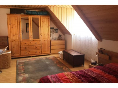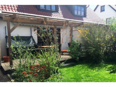 Schöne Doppelhaushälfte mit tollen Garten! Im Erdgeschoss befindet sich das 25m² große Wohnzimmer mit Kachelofen und Zugang zur West-Terrasse, sowie die Küche (ohne Einbauten), eine Essnische mit Zugang zur Ost-Terrasse und ein Gäste-WC.Im Obergeschoss des Objekts befinden sich des weiteren das Schlafzimmer, das Badezimmer mit Fenster und ein Kinderzimmer/Büro. Der Balkon ist vom Schlafzimmer und vom Kinderzimmer aus begehbar.Der Keller, bestehend aus zwei seperaten Kellerräumen, einen Geräteraum und Waschraum bietet ausreichend Stauraum.Im Keller befindet sich außerdem eine seperate Dusche. Der Keller ist von außen direkt begehbar.Des weiteren verfügt das Haus über eine PKW-Garage und zwei weiteren Außenstellplätzen.