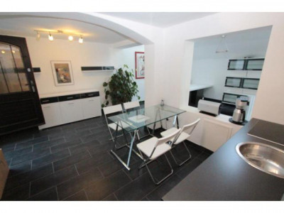 * über den Hof des Hauses gelangt man zum eigenen, überdachten Eingang * offene Küche mit Einbauküche samt Geschirrspüler, Backofen, Abzug etc. * Essdiele (zusammen ca. 16 qm) * Arbeitsbereich* Wohnbereich (Wohnzimmer insgesamt ca. 30 qm) mit Zugang auf die Terrasse (S/O-Ausrichtung) und den Gartenanteil (insgesamt ca. 40 qm)* Schlafzimmer (ca. 15 qm) mit Doppelbett und direktem Bad-Zugang * Badezimmer (ca. 6 qm) mit Badewanne, Handtuchtrocknerheizung zusätzlich zur Fußbodenheizung und Waschmaschinenanschluss (keine Waschmaschine vorhanden)