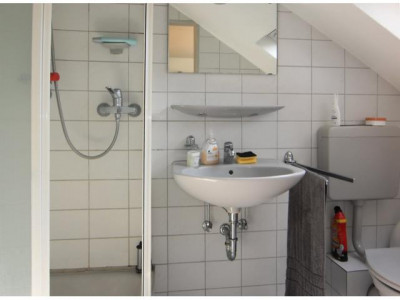Das schicke 1-Zimmer-Appartement liegt im 3. Obergeschoss eines Wohn-und Geschäftshauses. Es ist über ein separates Treppenhaus zu erreichen.Das Appartement bietet eine Wohnfläche von ca. 28 m² und besteht aus einem Wohn-, Schlaf- und Essbereich, einem Badezimmer (Dusche) mit Fenster und einer Pantryküche. Der Wohn- und Schlafbereich ist mit hellem Laminat ausgestattet, einem Wohnzimmerschrank, einem Kleiderschrank und einem großen Bett. Das Badezimmer ist deckenhoch mit hellen Fliesen ausgestattet. Im Gebäude ist auch eine gemeinschaftliche Tiefgarage vorhanden, welche über einen Autolift erreichbar ist.