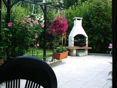 2 Fam. Haus mt gehobener Ausstattung, Aussen + Innen Kamin, Einbauküche, Glastüren Edelholztüren, Laminatböden, Schiebetüre, Isolierverglasung, grosse Terrasse Schiebetüre zum Garten.extralange Garage + 4 zusätzliche Stellplätze. Möglichkeit zur Schaffung eines Freisitzes für die Einliegerwhg.