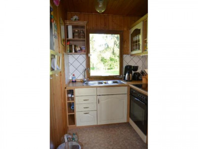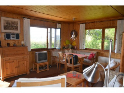 Zum Verkauf kommt dieses als Ferienhaus in 1971 errichtete Gebäude auf einem traumhaften 928 m² großen Grundstück mit Fernsicht über Feld, Wald und Flur. In der Nachbarschaft diverse vergrößerte und auch verklinkerte Häuser mit Dauerbewohnern. Zufahrt über Schotterstraße. Am Grundstückseingang über einen privaten Zuweg hat der Eigentümer Parkmöglichkeiten in einer Art *Rondell *geschaffen. Ein Teich und alter Baumbestand schaffen eine naturnahe und erholsame Umgebung. Über die 22 m² große Terrasse in sonniger Südausrichtung erreichen Sie den Hauseingang und gelangen in den gut 18 m² großen Wohnraum. Hinten links die kleine Küche (3,44 m²), rechts hintereinander die zwei Schlafkammern (á 5,4 m²) mit Einbauschränken, ein kleiner Zwischenflur (2 m²) mit Stauraum und Hauswasserwerk sowie von dort Zugang zum modernen, erst vor 10 Jahren erbauten Badezimmer als Duschbad (3,5 m²). Rechts vom Haus ein ca. 6 m² großes Holzhaus für Gartengeräte, Fahrräder etc. Das Mobiliar und der Holzhausinhalt werden möglichst mitverkauft und sind mit dem Kaufpreis abgegolten. Das erhöht erbaute Gebäude hat eine Art ebenerdigen *Kriechkeller* als Stauraum, der über eine Klappe seitlich am Haus erreichbar ist. Der Dachboden ist ebenfalls über eine Fassadenluke erreichbar, zwischen den Sparren isoliert und auf den Balken auch gebückt begehbar, als Stauraum ausbaufähig. Sofort frei. Preis VB. *** Kaufen derzeit oft billiger als mieten - wir zeigen Ihnen wie! Finanzierungsgutschein siehe Anlage. *****