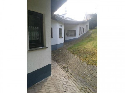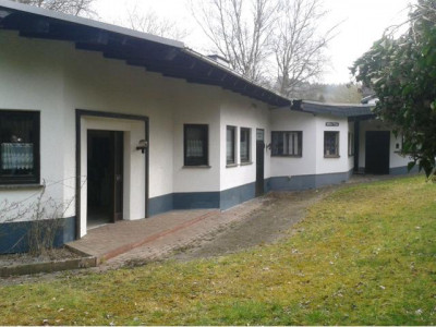 Dieser individuell nutzbare Bungalow wurde 1984 in solider, massiver Bauweise errichtet. Er verfügt über eine Wohnfläche von ca. 400 m² auf einer Ebene. Durch die optimale Raumaufteilung ist es möglich, bis zu 4 Wohnungen aus diesem großen Bungalow zu trennen. Das Grundstück befndet sich in einer absoluten, ruhigen Ortsrandlage mit Blick in die Weite. Angrenzend an das Grundstück befindet sich ein Bachlauf. Im hinteren Gartenbereich befindet sich ein Gartenhaus, sowie ein Pferdestall für 2 Pferde, daher eignet sich dieses Anwesen auch ideal für Pferde.-/Tierhaltung. Die angrenzende Wiese ist ca. 1.858 m² groß und kann käuflich hinzu erworben werden.Aufteilung:Wohnung 1: Eingang, Schlafzimmer 1 mit Ankleide, geräumiges Wohn.-/Esszimmer, Küche, Bad, WC., Schlafzimmer 2Wohnung 2: Eingang, Wohn.-/Esszimmer mit Küche, Bad/WC., SchlafzimmerWohnung 3: Wohnküche mit Abstellraum, Wohnzimmer, Esszimmer, Schlafzimmer, Waschküche, Gäste/WC., Bad/WC.Wohnung 4: sehr großes Wohn.-/Ess.-/Schlafzimmer mit Kachelofen, WC.