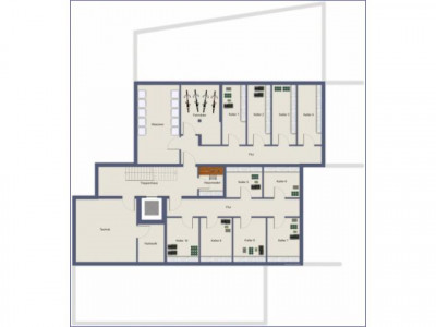 Es entstehen vier 2-Zimmer-Wohnungen in Erd- und Obergeschoss mit je 63 m² und 78 m² Wohnfläche, sowie vier 3-Zimmerwohnungen in Erd- und Obergeschoss über je 118 m² und 105 m² Wohnfläche. Die beiden großzügigen 3-Zimmer-Penthouse-Wohnungen im 2. Obergeschoss erstrecken sich auf je 126 m² Wohnfläche. Die Gemeinschafts-, Versorgungs- und Abstellräume befinden sich im Keller. Alle Etagen des Hauses sind selbstverständlich mit dem Fahrstuhl erreichbar.