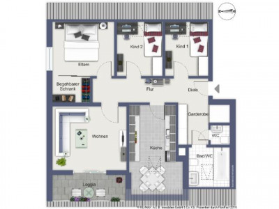Eine gemütliche Eigentumswohnung mit in ruhiger, kinderfreundlicher Ortslage. Unser Video können Sie sich anschauen unter:https://www.youtube.com/watch?v=KTx2Ymzm7XU&feature=youtu.beDie Wohnung bietet 4 Zimmer nebst schöner großer Küche in der sich bequem ein Essplatz für 4 Personen einrichten lässt .Die vorhandene, gut ausgestattete Einbauküche ist selbstverständlich im Kaufpreis enthalten. Ein Bad mit Fenster, Badewanne und Dusche sowie ein Gäste-WC und ein sehr geräumiger Flur mit angrenzendem Garderoben- oder Abstellraum runden das Bild ab. In dieser gemütlichen Wohnung können sich sowohl eine Familie mit 2 Kindern oder aber auch ein Paar, welches großzügig wohnen möchte, angenehm einrichten. 2011 wurde die gesamte Wohnung von Grund auf renoviert und zusätzlich wärmegedämmt. Die Fenster sind zum größten Teil erneuert worden. Als Fußbodenbelag in den Wohnräumen dient Laminat. Im Wohnzimmer ist Parkett verlegt. Bad und Gäste-WC sind gefliest. Ausruhen kann man sich, wenn sich das Wetter entsprechend zeigt und Zeit dazu ist, auf der nach Südwesten ausgerichteten Loggia, die vom Wohnzimmer erreichbar ist. Erwähnung sollte noch der zum begehbaren Kleiderschrank umfunktionierte Abstellraum neben dem Schlafzimmer finden.Das gesamte Haus wurde 1972 in herkömmlicher Massivbauweise "Stein auf Stein" mit Kalksandstein als Innenmauerwerk und hellem Vormauerstein als Vormauerklinker erstellt. Das Sechsfamilienhaus ist in einem gepflegten Allgemeinzustand ohne nennenswerten Reparaturstau. In Kürze wird von der vorhandenen Nachtspeicherheizung auf eine moderne, gasbefeuerte Zentralheizung umgestellt. Das Haus ist nicht unterkellert. Die Abstellräume zu den einzelnen Wohnungen sind im Dachgeschoß zu finden. Hier oder im Garten an der "Wäschespinne" kann die Wäsche getrocknet werden.Gewaschen wird in der Wohnung selbst. Die zur Wohnung gehörende Einzelgarage beherbergt das Auto. Gäste haben an der Straße immer Platz zum Parken.
