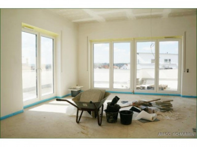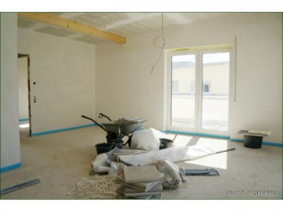 Provisionsfrei! Neubau - Energieeffizienzhaus 40Wer träumt nicht davon, in stadtnaher Lage hochwertig und ruhig zu Leben. Hier entsteht, mit einer Wohnfläche von knapp 96 qm, ein energetisch durchdachtes Neubauprojekt - das den Ansprüchen und Wünschen von Pärchen oder Singles gerecht wird.Die Architektursprache der Grundrisse ist klar und gradlinig - die Ausführungen sind barrierefrei. Zugleich sorgt sie für viele verschiedene Stellmöglichkeiten der Möbel und für helle, moderne Räume. Die Deckenhöhe ist ebenso außergewöhnlich.Im Mittelpunkt der Wohnung steht der offene, Wohn- Essbereich, mit integrierter Küche. Der Bereich umfasst ca. 33 qm.Das Wohnzimmer wird aufgrund seiner Größe, in Verbindung zur Fensterfront mit bodentiefer Verglasung, auch höchsten Ansprüchen gerecht. Der hier empfundene Freiraum findet sich auf der Dachterrasse fort.Als Highlight der Wohnung umrandet die Terrasse die Wohnfläche. Die Aussicht ist beeindruckend, Sonnenuntergänge versprechen außergewöhnliche Stunden und eine hohe Lebensqualität.Ein helles Badezimmer ist hochwertig möbliert - mit Badewanne, begehbarer Dusche, WC und Waschtisch.Das Schlafzimmer, mit einer Größe von ca. 13 qm, bietet ausreichend Stellfläche für Ihre Möbel - auch hier haben Sie direkten Zugang zur Dachterrasse. Ein kleineres Zimmer rundet die Wohnfläche ab - das könnte Ihr Büro sein.Die Wohnfläche beträgt, inkl. des Anteils der Terrasse, ca. 96 qm.Im Untergeschoss des Hauses steht Ihnen ein Kellerraum zur Verfügung. Ebenso befinden sich hier die Pkw Stellplätze. Ein Stellplatz in der Garage kostet 16.500.- €, für 7.500.- € können Sie auch einen Außenstellplatz erwerben.
