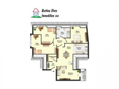 Diese herrliche Dachgeschosswohnung von Baujahr 1996 wird Sie begeistern.Auf 98,48 m² Wohnfläche finden Sie folgendeA U F T E I L U N G :* Diele mit Zugang Abstellraum* Tageslicht-Badezimmer mit Wanne & Dusche* offener Wohn-, Ess- und Küchenbereich* Sonnenbalkon mit ruhigem Grünblick (SÜD-WEST-Seite)* 3 SchlafzimmerU N T E R G E S C H O S S* Gemeinsamer Fahrradraum mit Zugang Innenhof* Eigener Kellerraum* Gemeinsamer Waschmaschinen & Trocknerraum* Gemeinsamer Trockenraum* Heizungsraum mit Öl-ZentralheizungA U S S E N B E R E I C H* 2 PKW-Stellplätze inklusive* Gemeinsamer Garten* Zugang vom Innenhof ins UntergeschossH A U S G E L D* derzeit bei 340,-EURmtl. (bei 4 Personen)* bei 1 Person war nur 190,-EUR/mtl. Hausgeld* inkl. Hausmeisterservice für Innenhof/Straße/Winterdienst* inkl. Treppenhausreinigung* inkl. Rücklagenzuführung für Instandhaltung & VerwaltungskostenKEIN REPARATUR oder RENOVIERUNGSSTAUMODERNISIERTE LAMINATBÖDENJETZT WOHNUNGSBESICHTIGUNGI N T E R E S S I E R T ?* Vereinbarung eines Besichtigungstermins unter 06073-72357-0* Wir freuen uns auf Ihren Anruf!* Bettina Dietz Immobilien GbR seit 1992