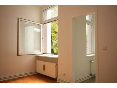 Die hier angebotene Wohnung befindet sich in einem gepflegten Altbau, welche Sie über zwei Stufen im Durchgangsbereich des Hauseinganges erreichen können. Die Wohnung hat ein sehr geräumiges Zimmer zur Straßenseite mit Nord-West-Ausrichtung und ein Durchgangszimmer zum Hof, von dem die kleine Küche erschlossen wird. Hier befindet sich eine einfache weiße Einbauküche mit freistehendem Gasherd und einer Dunstabzugshaube. Beim Kochen können Sie in den begrünten Innenhof schauen. Im Eingangsbereich der Wohnung befindet sich das innenliegende kompakt geschnittene Bad, dass weiß gefliest ist und über eine Badewanne, ein Handwachbecken und ein WC verfügt. In den Zimmern sowie im Flur befinden sich abgeschlieffene Dielendußboden, das Bad ist gefliest. Die Wohnung ist renoviert und kann sofort bezogen werden.