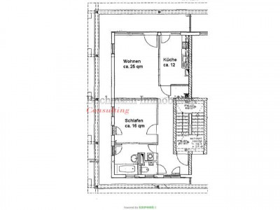 Unemotional gesehen eine 2-Zimmer-Wohnung...aber schon beim Betreten des Hauses erscheint hier alles ein wenig edler... gebürstete Treppenläufe zu hellen freundlichen Wänden. Dieser Standard setzt sich auch gleich fort in der Wohnung. Eine großzügige Diele empfängt Sie mit Tageslicht und gibt die Blicke auf alle weiteren Räume frei: 1 gut möblierbares Schlafzimmer mit ca. 16 qm, ein helles Wohnzimmer, ein Wannenbad mit Fenster und Waschmaschienenstellplatz und vorallem eine tolle Küche, in der man auch sitzen kann. Die umfangreiche Möblierung der Küche ist schon über dem Standard, finden Sie neben der Kühl-Kombi, Geschirrspüler und Ceran-Herd einen eingebaute Microwelle... Neugierig geworden? Abgerundet wird die tolle Dachwohnung ohne Schrägen! durch die umlaufende Terrasse, im Bereich des Wohnzimmers ist genügend Platz für schöne Möbel!