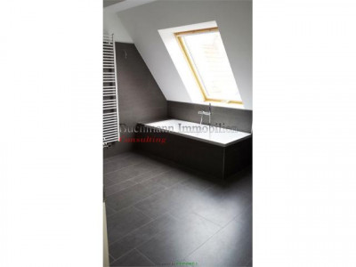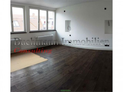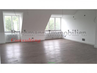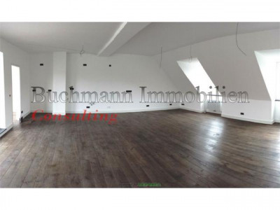 Nach einem hochwertigen Ausbau der gesamten Dachgeschoß-Ebene auf einem Altbau aus ca. 1900 sind insgesamt 4 tolle und moderne Wohneinheiten entstanden, wovon 2 sofort vermietet wurden. Diese Einheit steht nun kurz vor der Fertigstellung und sucht Sie!Kommen Sie rein und Ihr Blick wird sich erstmal gerade aus in den überaus großen Wohnbereich mit offener Küche verlieren - 67 qm erwarten Sie hier! Als Lebensmittelpunkt einfach super genial! Das super geräumige Wohnzimmer bietet wunderbare Kuschelecken für eine Sofa-Landschaft! Unterstreicht wird das hochwertige Interieur durch eine exklusive Musik-Verkabelung, wodurch nicht nur jeder Fernsehabend zu einem Kino-Event wird.Die Küche wird dem Ambiente der Wohnung gerecht in edlen hellen Fronten zu einer anthrazithfarbenen Arbeitsplatte ausgestattet und umfangreich mit Geräten versehen sein. Lediglich die Kühlkombi muß der Mieter nach seinem Geschmack stellen. Platz für einen Amerikanischen ist auf jeden Fall eingeplant! Doch auch der Rest der Wohnung ist nicht von schlechten Eltern: Vom Eingangsflur geht ein großes Schlafzimmer mit 21 qm ab, dem direkt gegenüber ist vom Flur das 1. Badezimmer mit begehbarer Dusche gelegen. Nicht zu verachten - leider zu selten - ein richtiger Hauswirtschaftsraum, denn eine Waschmaschine ist ja nicht so schön in einem edlen Badezimmer... Hier befindet sich auch die Gas-Therme und Warmwasserversorgung.Über den Wohnbereich gelangt man durch eine geräumige Ankleide (ca. 10 qm), welche sicher auch als Arbeitszimmer mit Blick in den Himmel genutzt werden kann, in das Schlafzimmer mit dem Hauptbad-Bad . Hier ist wieder Durchatmen angesagt! Dieses Luxus-Bad verfügt über Wanne und geräumiger begehbarer Dusche mit Fenster - edle Ausstattung! Eine Duschwand und die Waschtische werden natürlich noch instaliert ;-)Die dann noch vom Wohnbereich zu betretende Loggia nach Osten runden einen individuellen und pfiffigen Grundriss ab. Lust bekommen? Dann vereinbaren Sie Ihren persönlichen Einzeltermin mit uns, denn wir hassen Massenbesichtigungen :-)