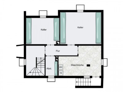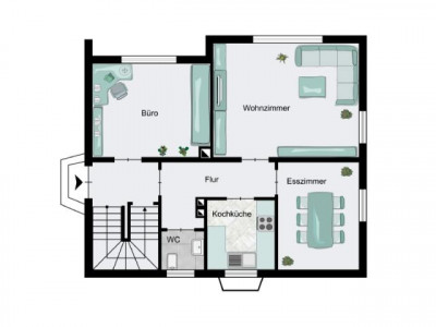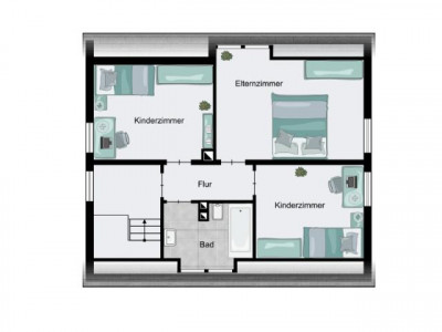 Einfamilienhaus mit Vollkeller und Doppelgarage. Das Haus ist aufgeteilt mit einem Wohn-Esszimmer, Küche, Arbeitszimmer, überdachtem Freisitz, Flur, Gäste WC, Schlafzimmer, 2 Kinderzimmer und Bad mit WC.