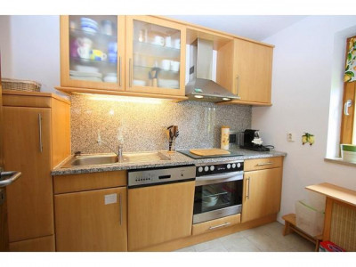 Zauberhafte Gartenwohnungseparater Eingang, 2 Zimmer im EG + 1 großes Zimmer im UG, Bad mit Wanne, EBK, ca. 71m² Wfl., nutzbare W/Nfl. 87m², Südterrasse mit Garten, Bergblick, Keller, Duplexparker