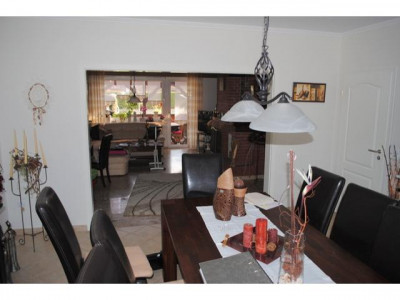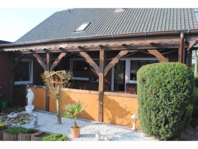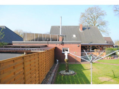 Das Objekt wurde ca. im Jahre 1981 in Massivbauweise auf einem ca. 947 m² großen Grundstück erbaut. Als Außenhaut wurde ein rot-brauner Klinker gewählt. Das Satteldach ist mit schwarzen Tondachziegeln eingedeckt worden und verfügt über eine Kupfer-Dachrinne. Zur weiteren Ausstattung zählen weiße, isolierverglaste Kunststofffenster, welche über Rollläden verfügen. Zudem wurde das Erdgeschoss mit weißen Stiltüren versehen. Die Bäder sind 2013 erneuert worden. Bei den Bodenbelägen hat man sich für Fliesen- und Laminatböden entschieden. Die Beheizung erfolgt sowohl über eine Erdgasheizung, als auch über eine Ofenheizung (beide aus 2006). Im Wohnzimmer ist zusätzlich ein Kamin vorhanden, welcher für eine wohlige Wärme sowie eine behagliche Atmosphäre sorgt. Zur Warmwasserunterstützung ist eine Solaranlage (ca. 400 Liter) gegeben. Neben den neuen Badmöbeln ist auch die Einbauküche im Kaufpreis enthalten. Über eine offene Marmortreppe mit Stahlgeländer gelangen Sie ins Dachgeschoss, in dem Sie neben einem Duschbad ein Wohnzimmer sowie vier Schlafzimmer (eins mit Küchenanschluss) vorfinden. Die Möglichkeit einer Einliegerwohnung im Dachgeschoss ist gegeben. Zur Unterbringung der Fahrzeuge sind neben einer großen Garage zwei weitere Einstellplätze auf dem Grundstück gegeben. Zudem verfügt das Objekt über eine Werkstatt. Der komplett eingezäunte und schön angelegte Garten mit großer überdachter Terrasse lädt zum gemütlichen Verweilen ein. Ein Objekt im TOP-Zustand!!Daten Energieausweis: V, 122,2 kWh, Gas, Bj. 2006, D