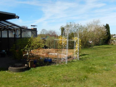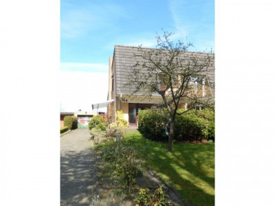 1976 entstand diese Doppelhaushälfte am Rande eines ruhigen Wohngebietes in Stuhr-Seckenhausen. Der gepflegte, gelbe Klinkerbau überzeugt durch seine helle Atmosphäre, eine durchdachte Aufteilung und ein sehr schönes Grundstück mit Blick über Wiesen und Felder. Aufgrund seiner Größe und Lage ein optimales Heim für die kleine Familie!Aus einer gefliesten Diele, die sich dem kleinen Windfang anschließt, erreichen Sie die beiden zentralen Bereiche des Erdgeschosses. Das helle und großzügige Wohnzimmer ist durch eine Glasschiebetür von der Diele getrennt und in diesem Raum wurde ein schöner, hochwertiger Kaminofen mit einer Sitzbank eingebaut. Eine große Fensterfront bietet einen tollen Blick auf den hübschen Vorgarten.Äußerst großzügig wurde auch der Küchen- und Essbereich gestaltet. Die weiße, mit Buchenelementen abgesetzte Einbauküche ist top gepflegt und verfügt über jede Menge Stauraum. Im zur Küche hin offen gestalteten Essbereich können Sie problemlos einen großen Tisch unterbringen und auch von dort erhalten Sie den direkten Zugang in den pflegeleicht angelegten Garten.Über eine freie Holztreppe gelangen Sie aus der Diele ins Obergeschoss, wo Sie drei helle Räume sowie ein Tageslicht-Vollbad mit Wanne und Dusche erwarten. Das Elternschlafzimmer hat einen eigenen Balkon, ebenso verfügt es über den Zugang zum Dachboden über eine Bodeneinschubtreppe. In eines der Kinderzimmer wurde eine urgemütlicher Bettnische eingebaut.Auch der Keller ist über den offenen Dielenbereich zu begehen. Hier ist sehr viel Lagerraum vorhanden, außerdem ist Platz für Waschmaschine und Trocknerund darüber hinaus wurde eine Sauna mit einer separaten Dusche untergebracht. Praktischerweise gibt es aus dem Keller auch einen Zugang zum Garten. Der Garten wurde pflegeleicht angelegt und bezaubert mit einem großen Teich und einer eigenen "Weinlaube", die im Sommer sehr schön berankt ist. Zum Haus gehört eine Garage mit Geräteraum und ein Gartenhäuschen.
