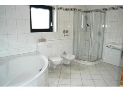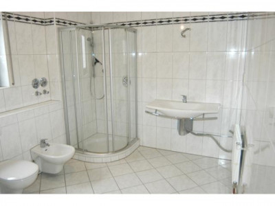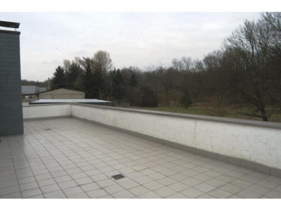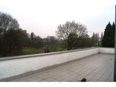 Extras:Dachterrasse: sehr große Dachterrasse (ca. 75 m² - anteilig in Wohnflächenberechnung enthalten) in Südlage mit Blick ins Grüne - begehbar von Wohnküche + von einem Zimmer * Küche: sehr große Wohnküche mit viel Platz + Terrassenzugang * Bad: sehr großzügig, mit Fenster, Wanne, Dusche, Bidet + WC * PKW: bei Bedarf kann ein PKW-Außenstellplatz für Euro 30/Monat zusätzlich angemietet werden * Renovierung: die Wohnung ist renoviert * Wärmeabgabe:als Fußbodenheizung * Fenster: Einbau neuer Kunststofffenster mit Isolierverglasung + Rollos erfolgte 2001 * Gegensprechanlage: mit Videoüberwachung vorhanden * Hauswirtschaftsraum/Abstellraum: mit Fenster, Fliesenboden + Waschmaschinenanschluss in der Wohnung vorhanden (dafür kein Kellerraum) *