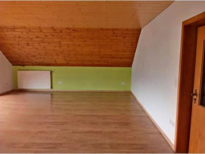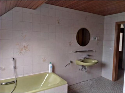 Diese Obergeschosswohnung bietet jede Mende günstigen Wohnraum, bei lichtdurchfluteten Räumen. Durch eine Aufstockung des Hauses entstand diese Wohnung 1984. Im Objekt befinden sich zwei getrennte Wohneinheiten. Das helle Wohnzimmer mit Zugang zum überdachten großen Balkon liegt auf der Gebäuderückseite. Von hier aus genießt man den Fernblick auf den schönen Schaumberg. Neben dem Wohnzimmer befindet sich ein heller Abstellraum, welcher auch als Arbeitszimmer genutzt werden kann. Über den Flur erreichen Sie ein Kinderzimmer, das Tageslichtbad mit Dusche und Wanne, Küche, sowie das Elternschlafzimmer. Ein viertes Zimmer wäre möglich, hier müsste aber noch renoviert werden. Im Flurbereich befindet sich genügend Platz für Gardarobe und Schuhschrank. Ein Kellerraum ist nicht vorhanden, jedoch können Farrad oder Kinderwagen in der Garage Platz finden, wenn erforderlich. Die Erdgeschosswohnung ist nicht dauerhaft bewohnt.Angaben zum ENERGIEAUSWEIS: Baujahr des Gebäudes: 1948/1984, Energieträger: Öl, Art des Ausweises: Bedarfsausweis, Endenergiebedarf: 154,3 kWh/(m2 a), Energieeffizienzklasse: E, Energieausweis vom 09.03.2015