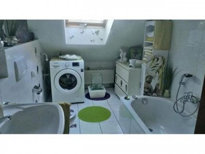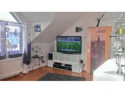 Diese helle Eigentumswohnung befindet sich im Dachgeschoss eines Achtparteienhauses aus dem Baujahr 1997. Die Wohnung ist sehr gepflegt und in einem guten Zustand. Der lange und recht breite Flur verbindet alle Räume miteinander. Vorne rechts befindet sich das Badezimmer mit Dusche und Wanne, sowie ein großes Dachfenster. Unter dem Fenster ist genügen Platz für Waschmaschine und Trockner. Alternativ kann der Gemeinschaftstrockenraum im Keller, oder der überdachte Balkon zum Trocknen genutzt werden. Auch das großzügige Schlafzimmer liegt rechts vom Flur. Das Herzstück ist das auf der Südseite gelegene offene Wohn-/Esszimmer mit Zugang zum Balkon, sowie zur Küche. Die Küche verfügt über eine Einbauküche, welche im Kaufpreis mit enthalten ist. Zusätzlich gibt es hinter der Küche einen Vorrats- und Abstellraum. Angaben zum ENERGIEAUSWEIS: Baujahr des Gebäudes: 1996, Energieträger: Fernwärme, Art des Ausweises: Verbrauchsausweis, Endenergiebedarf: 99 kWh/(m2 a), Energieeffizienzklasse:, Energieausweis vom 12.06.2008
