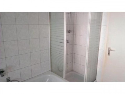 Die hier 1998 erbaute Eigentumswohnung befindet sich im Erdgeschoss eines Mehrfamilienhauses. 4 Zimmer-Küche-Bad und Gäste-WC verteilten sich auf einer Wohnfläche von 93,2 m². Zur Wohnung gehört zusätzlich eine Garage (Kaufpreis 5.500,- €) und ein Stellplatz (KP 2.500,- €). Der Gesamtkaufpreis beträgt somit 117.000,- €. Der Haupteingang befindet sich auf der Gebäuderückseite. Im Hausflur gelangen Sie gleich rechts in Ihre Wohnung. Der Eingangsbereich verbindet ein Kinderzimmer, Gäste-WC und das Wohnzimmer miteinander. Sowohl vom Kinderzimmer, als auch vom Wohnzimmer aus gelangt man auf den großzügigen Balkon. Im hinteren Bereich der Wohnung befindet sich die Küche, ein großes Elternschlafzimmer, das Tageslichtbad mit Dusche und Wanne, sowie ein zweites Kinder- bzw. Arbeitszimmer. Im Keller befindet sich ein gemeinsamer Fahrradraum, die Gemeinschaftswaschküche, sowie die einzelnen Wohnungskeller, welche viel Platz bieten. Angaben zum ENERGIEAUSWEIS: Baujahr des Gebäudes: 1998, Energieträger: Gas, Art des Ausweises: Bedarfsausweis, Endenergiebedarf: 154,3 kWh/(m2 a), Energieeffizienzklasse: E, Energieausweis vom 09.03.2015