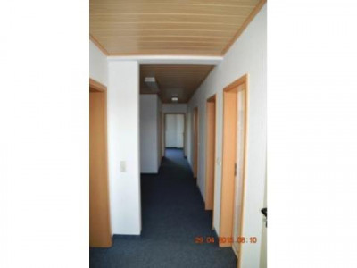 In dem Wohn- und Geschäftshaus an einer Hauptdurchgangsstraße gelegen, befindet sich die Büroetage im ersten OG.Durch einen eigenen Eingang gelangt man in ein helles Treppenhaus und in das Büro.Beim Eintreten gelangt man in einen großen Flur, der an der linken Seite die Möglichkeit zur Erstellung eines Empfangs bietet.Vom Flur aus gelangt man in alle Räumlichkeiten der Büroetage, keine Durchgangszimmer, alle separat. Eine kleine Teeküche, eine Herren und eine Damen Sanitäranlage runden das Ganze ab. Schöne helle lichtdurchflutete Fenster, die teilweise bodentief eingebaut sind.Der größere Raum kann als Besprechungs- oder Schulungsraum genutzt werden, da er ausreichend Platz bietet.