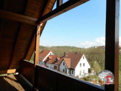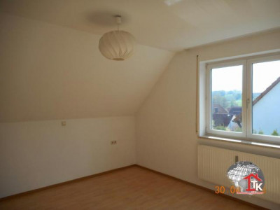 Die gepflegte 4 Zi.Wohnung befindet sich in der 2. Etage eines 3 Fam.Hauses in einer ruhigen, ländlichen Umgebung.Auf ca. 95 qm Wohnfläche verfügen Sie über eine große Wohnküche, ein großes Wohnzimmer sowie 3 Schlafzimmer und ein modernes Tageslichtbad.Vom Wohnzimmer gelangen Sie auf den großen, überdachten Balkon mit herrlicher Weitsicht über den gesamten Ort.Dazu gibt es ein Gäste WC und einen kleinen Vorratsraum.Die Küche ist mit Einbaumöbeln, außer Elektrogeräten eingerichtet.Zur Wohnung gehört eine große Garage und ein Stellplatz davor.Der Garten des Hauses kann gerne mitbenutzt werden.Die Wohnung ist ab sofort an Familien mit festem Einkommen zu vermieten.Besichtigungen jederzeit nach tel. Absprache