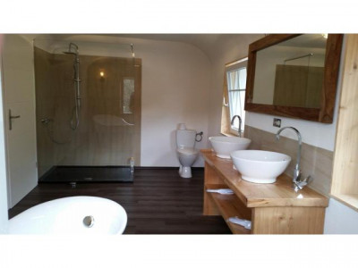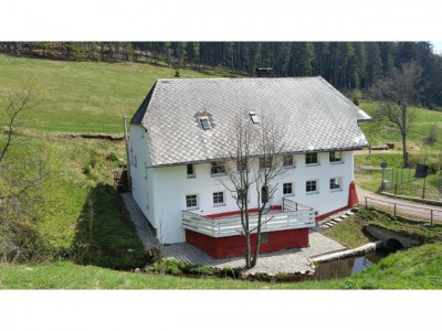 Zum Kauf finden Sie hier ein nahezu einzigartiges Anwesen mit unzähligen Möglichkeiten.Das sonnige 45000 qm große Grundstück umfasst ca. 25000 qm Waldfläche, die restlichen 20000 qm sind unteranderem Grünland, Biotop, Hofstadt mit Wohnhaus, Garagen, Stallung, Gartenhaus mit Weiher, Bachlauf und kleinem Privatweg mit Brücke.Das Wohnhaus wurde in den vergangenen 12 Monaten umfangreich Saniert/Renoviert/Modernisiert.Die Fassade hat man in einem außergewöhnlich schönen Stil gedämmt (Vollwärmeschutz). Neue Kunststoff Isolierglasfenster. Im ersten Stock wurde im vergangenen Jahr eine ca. 140qm große Wohnung aufwendig ausgebaut. Die Wohnräume und das mit Liebe gestaltete Badezimmer sprechen für sich.Die Wohnung im Erdgeschoss ist unrenoviert. Das Dachgeschoss wurde mit einem neuen Bretterboden versehen (das Dach ist nicht isoliert, dafür aber wurde die oberste Zwischendecke gedämmt).Im Haus befinden sich zwei große Gewölbekeller. Im Jahr 2010 bekam das Wohnhaus eine Zentrale-Stückholzheizung mit Wasserspeicher etc..Zusätzlich befinden sich auf dem Dach Solarplatten für z.B. das Brauchwasser (mit separatem Speicher).Außerdem gibt im EG und ersten OG jeweils einen Kachelofen.Im Nebengebäude befinden sich zwei Garagen, ein Pferdestall und Heulager "das auch als Hobbyraum oder Sonstiges genutzt werden kann".Vor dem Haus befindet sich ein kleiner Brunnen mit fließendem Quellwasser. Etwa 50 Meter oberhalb vom Haus befindet sich ein Gartenhaus mit Terasse und hauseigenem Weiher. Das Grundstück ist zum Teil eingezäunt.BILDER SAGEN MEHR ALS TAUSEND WORTE.Weitere Infos gerne auch telefonisch. Objektzustand: Erstbezug nach Sanierung
