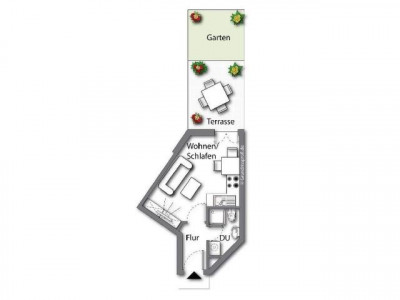 Diese schöne Wohnung befindet sich im Erdgeschoss eines 4-geschossigen nahezu halbkreisförmig errichtetem Wohnhauses einer größeren Wohnanlage. Diese Anlage entstand im Jahre 1996. Unterhalb dieses Objektes befindet sich eine Tiefgarage. Das Ensemble ist in eine liebevoll gestaltete Grünanlage integriert worden. Der Zugang zum Haus ist ausschließlich über den ruhigen Innenhof, fern ab jeder Hauptverkehrsstraße, möglich.Im Kellergeschoss finden die Bewohner praktischerweise neben dem eigenen großzügigen Kellerabteilen und den direkten Zugang zur Tiefgarage, auch Gemeinschaftsräume wie einen Trockenraum und einen Fahrradkeller.Der Schnitt der Wohnung ist außergewöhnlich. Neben einem sehr großzügigen Flur, der viel Stellfläche bietet, verfügt die Wohnung über ein innen liegendes Duschbad. Hier findet man außerdem ausreichend Platz für eine Waschmaschine.Der Raum integriert großzügig Wohnen und Kochen. Eine ausreichend große Küchenzeile ist möglich. Von diesem Raum aus gelangt man zum Herzstück der Wohnung - Eine Terrasse mit einem kleinen Stück Garten. Da diese Wohnung zum Innenhof liegt, ist sie absolut ruhig gelegen.