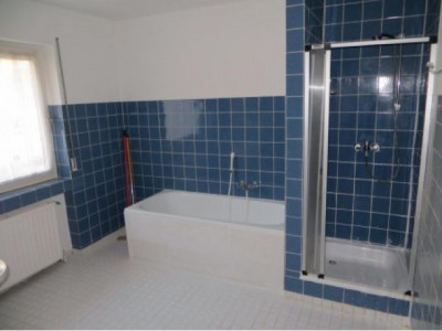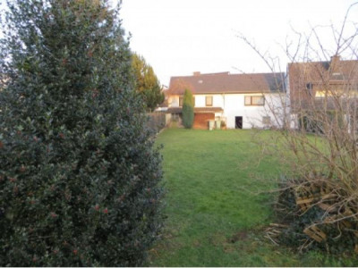 Das Haus ist charmant gestaltet - so befindet sich im Erdgeschoß statt eines Kellers, die Heizungsanlage mit Waschküche, ein kleiner Abstellraum, ein großer Raum (für Büro / Kind / Gästezimmer / Küche (Versorgungsleitungen und Gasanschluss sind vorhanden)), die beiden Garagen (eine davon für PKW / Motorradnutzung, die andere als Werkraum) sowie zwei Zugänge zum Garten. Im oberen Bereich befindet sich ein repräsentatives Wohn / Esszimmer, welches sich von der Hausfront bis zum Garten erstreckt und daher sehr hell und freundlich ist.Durch diese exponierte Lage besteht die einfach zu realisierende Option, einen Balkon mit Gartenzugang zu ergänzen. Neben dem Wohnzimmer befindet sich die große Küche, die über einen eigenen Zugang zum Wohnzimmer verfügt und zusätzlich auch über den Flur erreichbar ist. Die Küche verfügt neben den regulären Versorgungsleitungen auch über einen Gasanschluß. Darüber hinaus befindet sich im oberen Bereich ein geräumiges Bad mit WC, Dusche und Badewanne, ein großes Schlafzimmer sowie vis-a-vis zur Küche ein Gäste-WC. . Das Dachgeschoss ist im Moment über eine im Treppenhaus befindliche Zugleiter zu erreichen und hat über die gesamte Hausbreite Stehhöhe. Diese zusätzliche Ausbauoption läßt sich mit einer oder zwei Dachgauben bei Bedarf großzügig erweitern. Ein Übergang zum Garten wurde mit einer Überdachung erweitert, so dass nicht nur Wäsche wetterunabhängig dort getrocknet werden kann - mit sehr geringen Aufwand kann man sich dort sogar eine schöne, überdachte Terasse ermöglichen. Der großzügige Garten ist rundherum eingefriedet und steht durch seine optimale Südwest-Lage zudem vollständig in der Sonne. Im hinteren Bereich befinden sich einige Büsche, der Rest besteht aus Rasenfläche. Das Haus eignet sich durch den großen Garten somit ideal für Tierliebhaber, kleine Familien oder Paare und ist direkt bezugsfertig. Mit den in der Beschreibung skizzierten Optionen lassen sich vielfältige Erweiterungen schaffen.