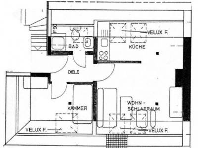 Single-Wohnung Nähe Knappschaftskrankenhaus: Gut ausgestattete, praktisch geschnittene Dachgeschoss-Wohnung in guter Wohnlage in Bochum-Langendreer mit Diele, Schlafraum (er zählt aufgrund der Schrägen als "halber" Raum), Wohnraum mit Kochecke, Bad mit Dusche. Die Wohnung hat Echtholzparkett und holzvertäfelte Schrägen. Zweckmäßige Einbauschränke nutzen den vorhandenen Raum optimal; eine kleine Hochetage im Wohnraum kann als Bett, als Fernsehnische oder als Stauraum genutzt werden. Es ist eine Dachgeschosswohnung mit Schrägen; die Grundfläche ist daher erheblich größer als die angegebene Wohnfläche (vgl. Grundriss) Zu der Wohnung gehören ein Kellerraum und eine Garage. Im Keller gibt es einen eigenen Anschluss für eine Waschmaschine, es ist ein Trockenraum vorhanden. Das Haus ist ein gepflegter Altbau mit einem Garten, der von den Mietern (vier Mietparteien im Haus) gemeinschaftlich genutzt wird.