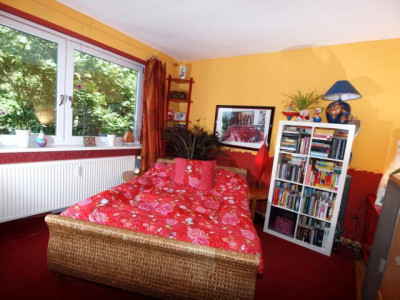 Die Wohnung liegt ruhig gelegen, ohne Straßenberührung.Sie wohnen mit viel Licht in einer hellen Endetagen-Wohnung im 4. OG. Je Etage befinden sich lediglich zwei Wohneinheiten!Das Wohnzimmer mit rund 23 qm ist nach Süd-West ausgerichtet und bietet vom Vormittag bis zum frühen Abend Sonnenschein. Auf dem Balkon mit Markise können Sie zum Abend mit Blick auf eine angrenzende Eiche den Feierabend genießen.Neben dem Wohnzimmer befindet sich ein weiteres Zimmer mit rund 22 qm, ebenfalls mit Süd-West-Ausrichtung. Dieser Raum hat zwei Fenstern und zwei Glasschiebetüren zum Betreten des Zimmers. Bei Bedarf kann das Zimmer in zwei Räume gleicher Größe geteilt werden; z. B. als Kinderzimmer.Das Schlafzimmer liegt mit Nord-West-Ausrichtung und ist rund 16 qm groß. Ein Einbauschrank mit 3,6 Metern Breite und 2,55 Metern Höhe inklusive.Alle Räume mit modernen Fenstern ausgestattet, z. T. dreifache Verglasung!Die Küche in moderner Buche. Mit Stellmöglichkeit für Essecke oder Hochtisch mit Stühlen .Das Gäste-WC können Sie bei Bedarf mit einer Waschmaschine ausstatten. Das Vollbad mit Wanne und Duschvorrichtung (Regendusche) hat ein großes Fenster, ist deshalb hell und Sie können den Raum gut lüften. Beide Sanitärräume modern mit wandhängenden WCs.Der Flur weist gute Stellmöglichkeiten auf, eine Kammer und Wandschrank gehen davon ab.