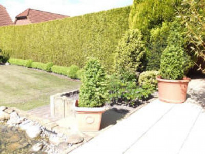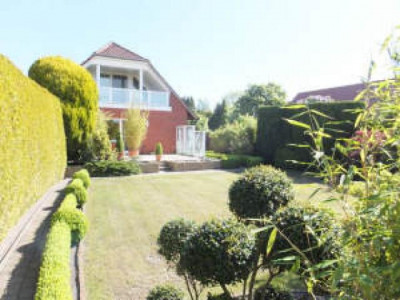 SEHR GEPFLEGTE IMMOBILIE - SONNENTERRASSE - LOGGIA - UNEINSEHBARER GARTEN!- Seniorengerechtes Wohnhaus- Aufwendige Komplettrenovierung 2004.- Geschlossene Ziergartenanlage mit herrlichem Baumbestand- Pflegeleichte Aussenanlagen mit 2 Garagen- Küche inkl. hochwertiger Einbauküche- Wohnzimmer mit Panoramafenster und Zugang zur Terrasse- Ebenerdiges Schlafzimmer- Modernes und helles Dusch- und Wannenbad- Schicke Gästetoilette- Eingangsdiele mit offener Holztreppe- Ausbaureserve im geräumigen Dachgeschoss (ca. 68 m²)- Gaszentralheizung (Bj 2002)- Optional gegen Aufpreis: Übernahme der kompletten wertigen Möblierung- Übernahme nach Vereinbarung