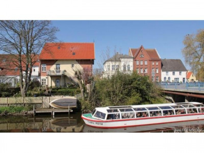 TRAUMHAFT WOHNEN DIREKT AM WASSER !Das markante "HAUS LANDSCHAFT STAPELHOLM" diente ursprünglich als Gasthaus insbesondere zur Bewirtung von Pferdehändlern aus der Region. Es ist reich verziert und verfügt über einen historischen Schweizer Giebel. In den Jahren 1997-2001 ist das Gebäude umfangreich saniert, modernisiert und weiter ausgebaut worden. Mit Unterstützung eines versierten Architekten ist dabei in Abstimmung mit der Denkmalbehörde ein echtes Unikat entstanden. Stilsicher wurden defekte oder unpassende Elemente durch aufgearbeitete historische bzw. hochwertige neue Materialien ersetzt wie z.B. Öland-Sandsteinplatten im Hausflur, alte Terracottafliesen in der Küche, Marmortreppe zum Wohnzimmer, Edelstahl-Holzkomibination im Spitzboden u.v.m.Ein maroder Stallteil ist einem hübsch angelegten Garten gewichen und das Dachgeschoß wurde bis in die Spitze ausgebaut. Die neue Dacheindeckung mit dicker Dämmung und Einbau einer neuen Gasbrennwertheizung optimierten die Energiebilanz.Das Haus wird derzeit als ein Einfamilienhaus genutzt.Denkbar ist ebenfalls eine gewerbliche Nutzung als Laden, Büro o.ä. Aufteilung wie folgt:Erdgeschoß: ca. 80qm ehemalige Gaststube, Schlafzimmer und Badezimmer, Flur mit Tür zum Garten und Treppenaufgang ins1.OG: ca . 100qm Flur, Küche, Salon, Wohnraum, Badezimmer, Ausgang zum Balkon mit separater Außentreppe.2.OG: ca 100qm Flur, Schlafzimmer mit begehbarem Kleiderschrank, Kinderzimmer, Arbeitszimmer mit Bibliothek, WC/ Heizungsraum3.OG: ca 20qm : Gästezimmer, Abstellraum, GalerieDer Keller des Hauses ist aufwendig saniert. In 3 Räumen sind hier Weinkeller, Dusche, kleiner Hobbykeller, Waschmaschinenanschluss und Aufgang zur Terrasse untergebracht.Der Außenbereich besteht aus ca. 100qm Garten und ca. 65qm befestigter Wege und großzügiger Terrasse direkt am Wasser mit eigenen Bootsanleger.Die Immobilie befindet sich in einem sehr gepflegten Zustand. Sie ist grundsätzlich nach Übergabe bezugsfähig.