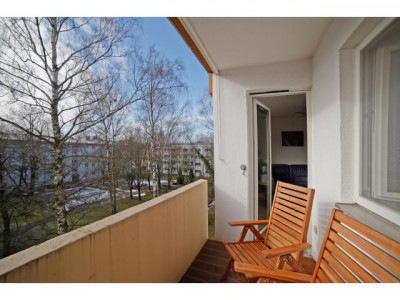 Die helle Einbauküche bleibt in der Wohnung. Das Bad wurde bereits erneuert. In der ganzen Wohnung sind weiße Kunststoff-Fenster verbaut. Da es sich um Kunststoff-Fenster der ersten Generation handelt, werden diese sicher in den nächsten Jahren ausgetauscht werden müssen. Für den Austausch bekommt der Eigentümer nach vorheriger Rücksprache mit der Hausverwaltung eventuell eine finanzielle Unterstützung.