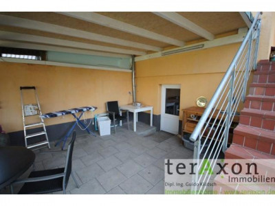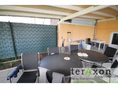 Hinter dem Haus befindet sich eine überdachte Terrasse.